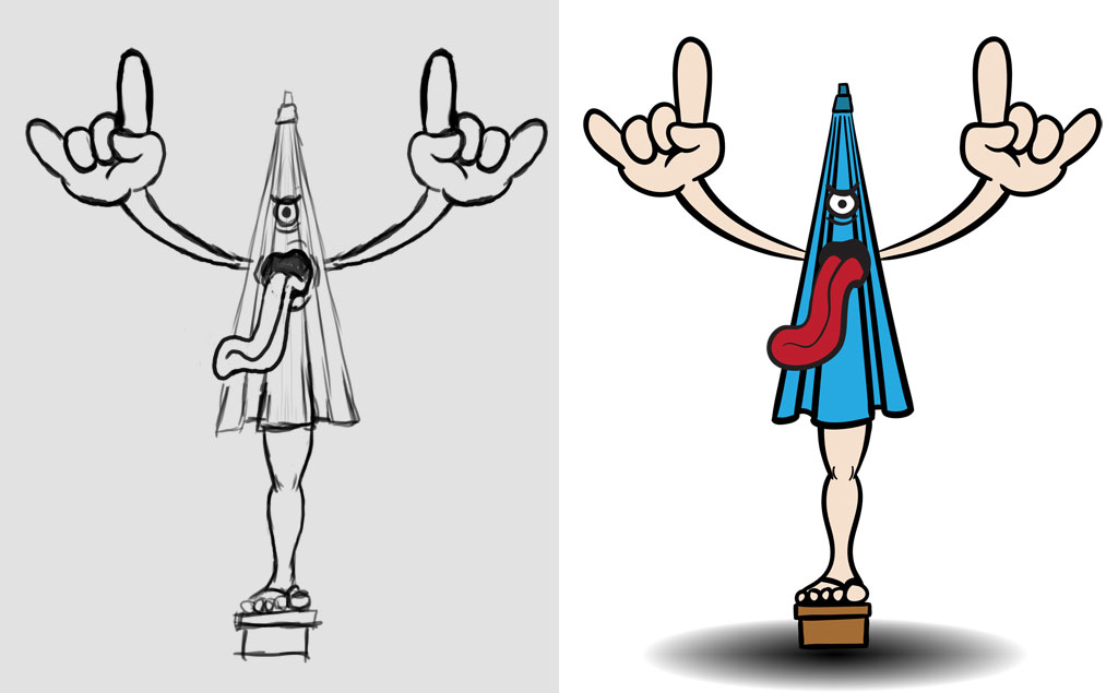 2. Tuesday 29/12/2009 – Kasa-obake, a type of Tsukumogami, a form of Japanese Spirit that originate from objects reaching their 100th year of existence, this guy reminds me of the Queens Of The Stone Age song “Monsters in the Parosol” so I drew him giving the devil horns. Sketch was real quick so I took into Illustrator and played around with pressure sensitive brushes.
